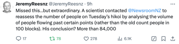Turns out they were all wrong, the tru number of those on the Hikoi as Newsroom now argues was 84 000…