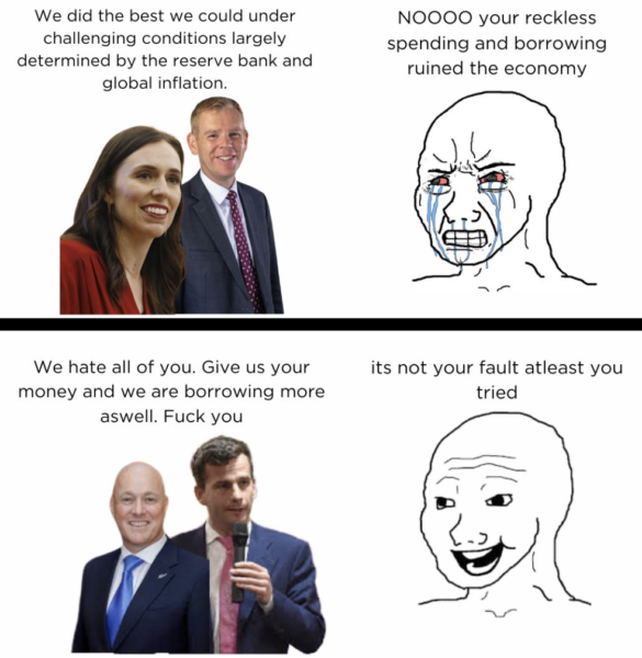 This National, ACT and NZF Government can not keep pointing to the money the previous Government borrowed to protect us from a once in a century pandemic as the reason the Economy is in free fall!