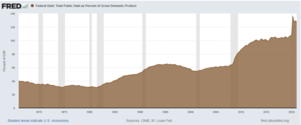 The US public debt is the most important indicator of this process, because of the weight of the US economy. From about 60% of GDP before the 2007 crisis, it exceeded 130% after the 2020 recession.