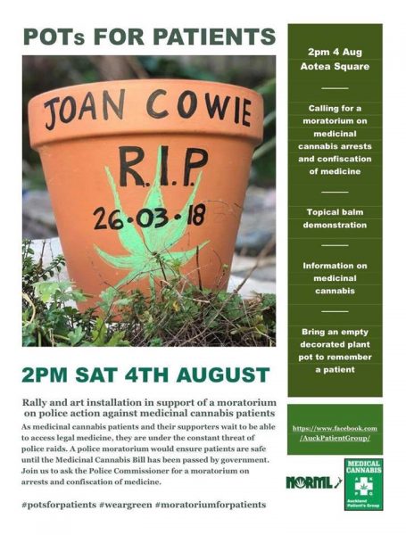 • The Medical Cannabis Art Installation and Rally is Saturday 4th August at 2pm in Queen Street, Auckland (opposite Aotea Square).