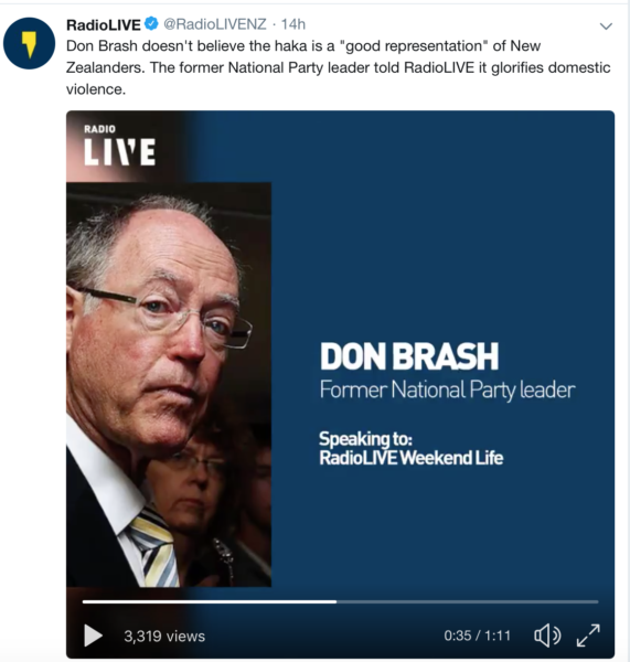 It reminds me of what Don Brash tried to claim in 2018 that the Haka was a dance of savagery that glorified domestic violence…