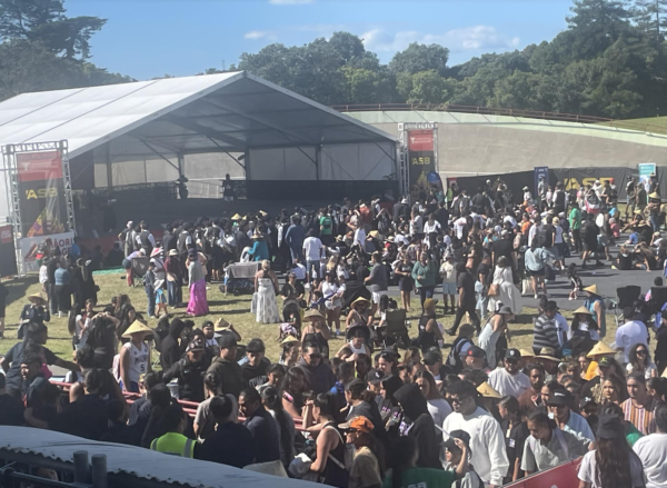 Polyfest was held at the Manukau Sports Bowl which is a large burning dish of heat with zero shade or seating. Directly under the flight path of Auckland Airport, large planes suspended midair like silver crucifixes drop menacingly from the sky every few minutes to remind everyone that those under that flight path are disposable to the interests of the wealthier suburbs of Tāmaki Makaurau.