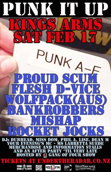 Continuing the tradition of memorable gigs at The Kings Arms, Punk It Up returns to the “KA” on Saturday Feb 17 for the “last ever punk show” before the venue takes its rightful place in the history of Auckland live music venues.