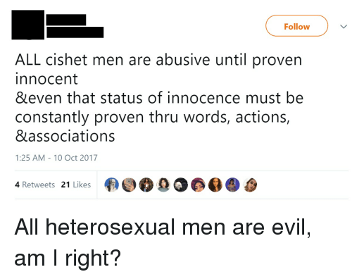 …With the new evidential threshold being allegations made on social media, identity politics demands men are framed as the problem and the evil that needs stamping out.