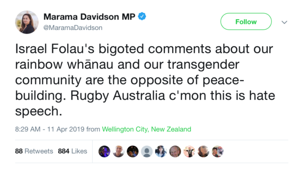 Israel Folau’s Instagram post is stupid, and he lost all credibility when he posted ‘hate speech’ which will be banned soon by Jacinda and UK.