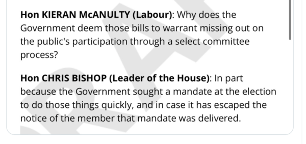 Saying, ‘we won, fuck you’ is not responsible Government, ramming through an anti worker agenda, anti renter agenda, anti beneficiary agenda, anti Māori agenda and an anti environment agenda isn’t Democracy, it’s a Plutocracy!