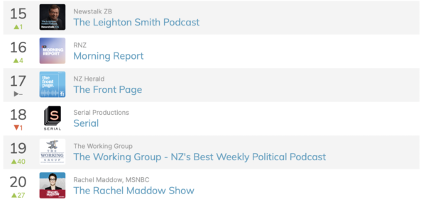 We are now the number 1 weekly political podcast in NZ based on Apple Podcast rankings and in the top 20 for all news podcasts!