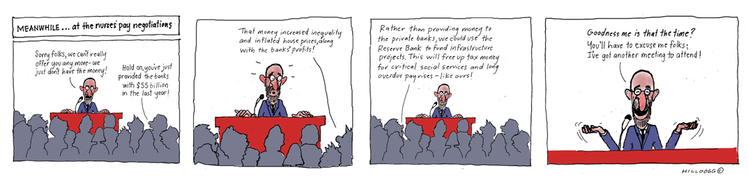 He cautions that the Reserve Bank money should not go directly to pay for the nurses’ wages, rather it should be used to pay for infrastructure such as roading, hospitals, schools and other public works.
