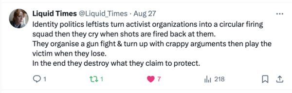 Wokes always going to eat their own tail as no one is pure enough eventually.
