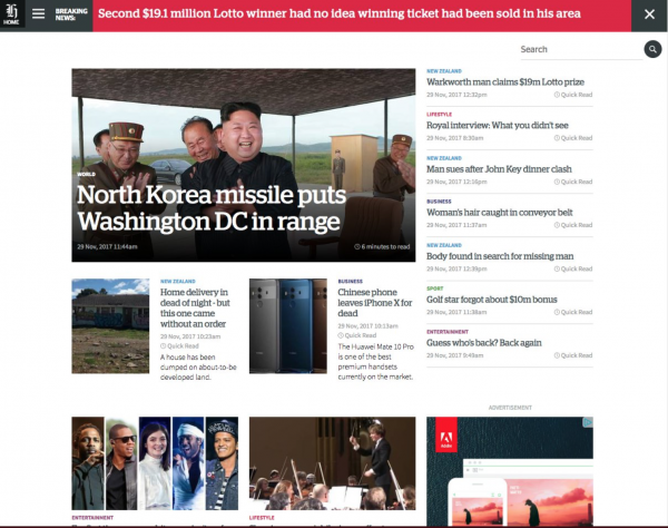 This was the NZ Herald website yesterday…
