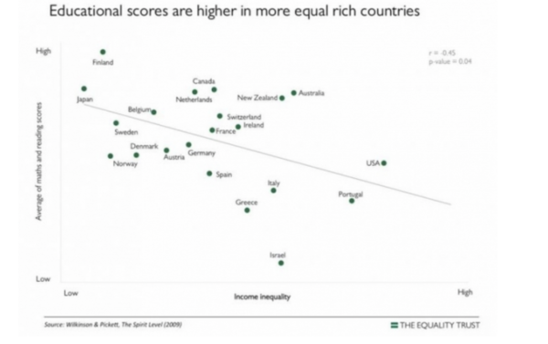 The link between inequality and education underachievement was first spelt out clearly by UK academics Wilkinson and Pickett in their 2009 ground-breaking study reported in their book “The Spirit Level: Why More Equal Societies Almost Always Do Better”.