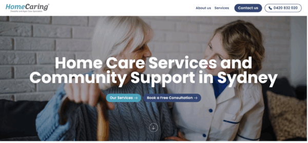 Operating widely across Sydney, HomeCaring specialises in NDIS services and aged care packages. It’s a popular choice for families requiring government-subsidised care.