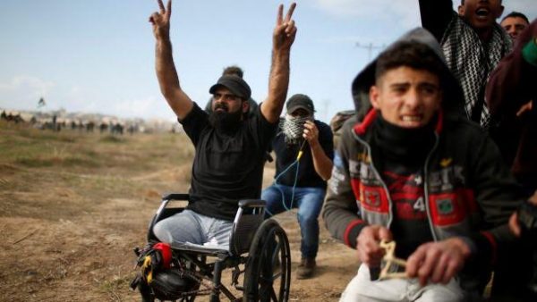 Ibrahim Abu Thuraya had lost both legs during Israeli Army shelling of the al-Bureij UN refugee camp in the 2008-09 Cast Lead Gaza offensive. He later made his living from his wheelchair by cleaning car windows. This year, seated in his wheelchair on Friday, December 15, Ibrahim was shot dead by an Israeli Army sniper who had safely positioned himself behind the border fence opposite the al-Shujaiyeh neighbourhood. Armed only with fists, Ibrahim Abu Thuraya had offended Israel by loudly protesting and the penalty for that was instant execution, or to put it more plainly, murder. The soldier who committed the crime will remain anonymous, there will be no fuss and the mainstream news media will continue to turn a blind eye – as will our politicians who will continue to expect the Palestinian people to ‘negotiate’ with a brutal regime that is driven by an ideology that places Israel above international law and apart from the norms of civilisation.