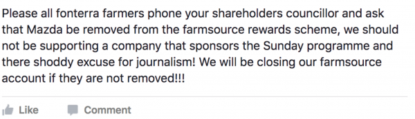Most farmers choose Toyotas and Fords ahead of Mazda anyway, so no great loss to NZ’s economy with a Mazda boycott.