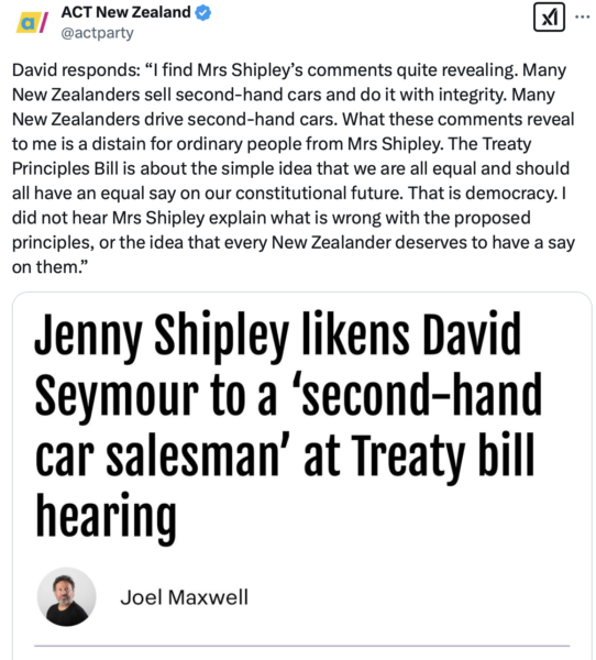 If ACTs take away from the scathing criticism of their race stunt Principles Bill is to take offence on behalf of second hand car salesmen would be hilarious if it wasn’t so dangerous.