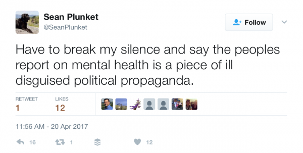 TWITTER WATCH: Is this the most stupid comment made about the People’s Report on Mental Health?