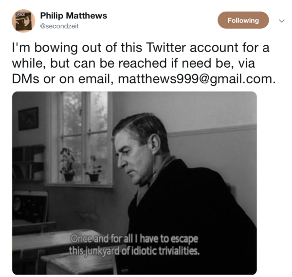 One of the saddest things this year for Twitter in 2018 has been the Action Station Wellington Twitteratti woke mobs who manage to strangle any debate. They have all the nuance of Mao’s cultural revolution and hound any other view off line. Philip Matthews is a critical and important voice in the NZ political Twittersphere, forcing him off line is pretty ugly, the Wellington Twitteratti who have been egging each other to contact his employers to complain will be delighted…