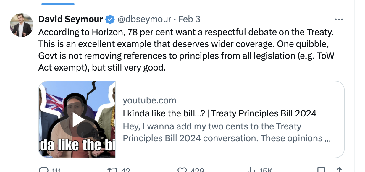 TWITTER WATCH: Ummm – I’m not sure that’s the Treaty Principles Referendum flex David Seymour thinks it is….