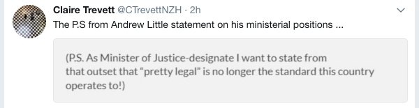 In the wake of National’s ‘pretty legal’ defence in their copyright dispute, Andrew Little the new Minister of Justice hilariously added this to his Ministerial statement…