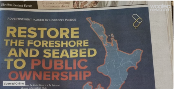 In light of newly revealed comments that the National Government intends to limit Maori Customary Rights to a mere 5% of the coastline, the allegations made in the Hobson’s Pledge NZ Herald advert are more farcical and more disingenuous than ever!