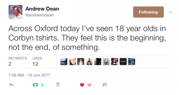 Labour: A Party that was polling 25 points down at the start of the campaign has now robbed Theresa May of her victory. The time to start eroding and undermining the Conservative Party is now and there has never been a better platform to launch a counter movement that will redefine the economic Left and challenge neoliberalism. There has never been a better day to join the Labour Party in the UK than now.