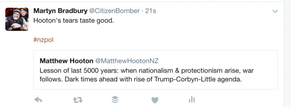 For God sake has Hooten lost the plot?????? Seriously putting Trump, Corbyn and Little in the same category…………………….