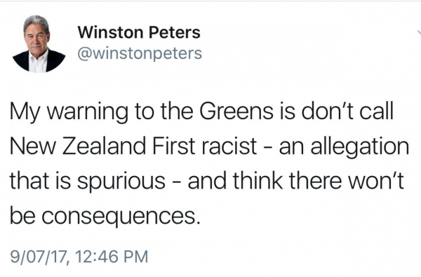 The Greens have shot themselves in the foot and stumbled. To come out of the gates on the “racism” issue is weak and if that is the best they can do then I hope they are relegated to the likes of United Future or Act. I still don’t get why people are upset with Winston because he won’t pick a coalition partner. If he does go with National, National will be weakened and Winston won’t sit back and let party policies like the TPPA pass. There is an old saying, ” Keep your friends close but keep your enemies closer.” I prefer Winston than United Future, Maori, or Act. Think about it. I despise National but Labour looks too weak and the Greens are in la la land and NZ first is gaining because NZ First policies favour New Zealand.