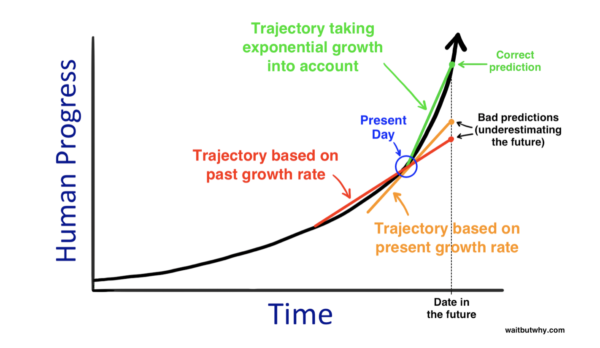 Our own experience makes us stubborn old men about the future. We base our ideas about the world on our personal experience, and that experience has ingrained the rate of growth of the recent past in our heads as “the way things happen.” We’re also limited by our imagination, which takes our experience and uses it to conjure future predictions—but often, what we know simply doesn’t give us the tools to think accurately about the future.2 When we hear a prediction about the future that contradicts our experience-based notion of how things work, our instinct is that the prediction must be naive. If I tell you, later in this post, that you may live to be 150, or 250, or not die at all, your instinct will be, “That’s stupid—if there’s one thing I know from history, it’s that everybody dies.” And yes, no one in the past has not died. But no one flew airplanes before airplanes were invented either.