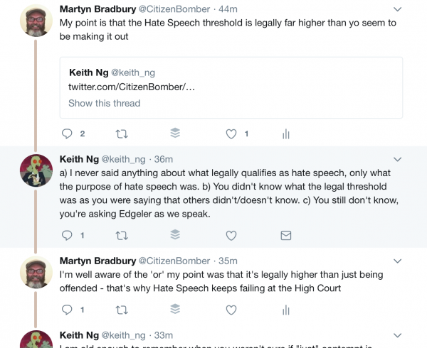 After a particularly unpleasant argument with Keith Ng on Twitter, I think part of the problem with the Brash, Molyneux and Southern debate is that there is a large amount of confusion over what ‘Hate Speech’ legally amounts to.