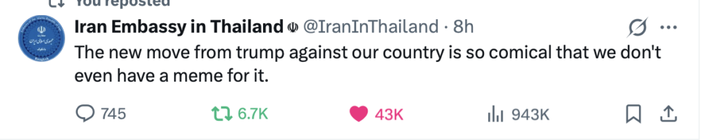 This is beyond satire now! Even the Iranians can’t believe this latest threat..