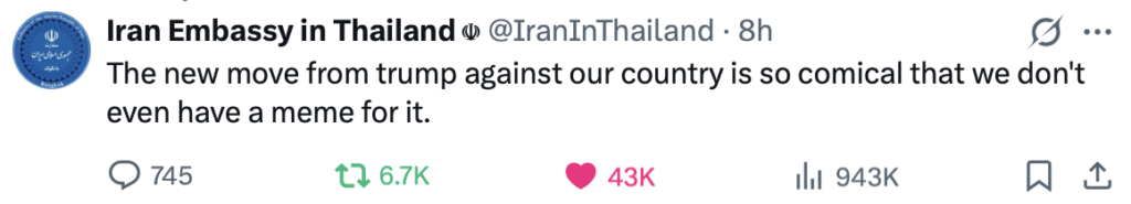 This is beyond satire now! Even the Iranians can’t believe this latest threat..