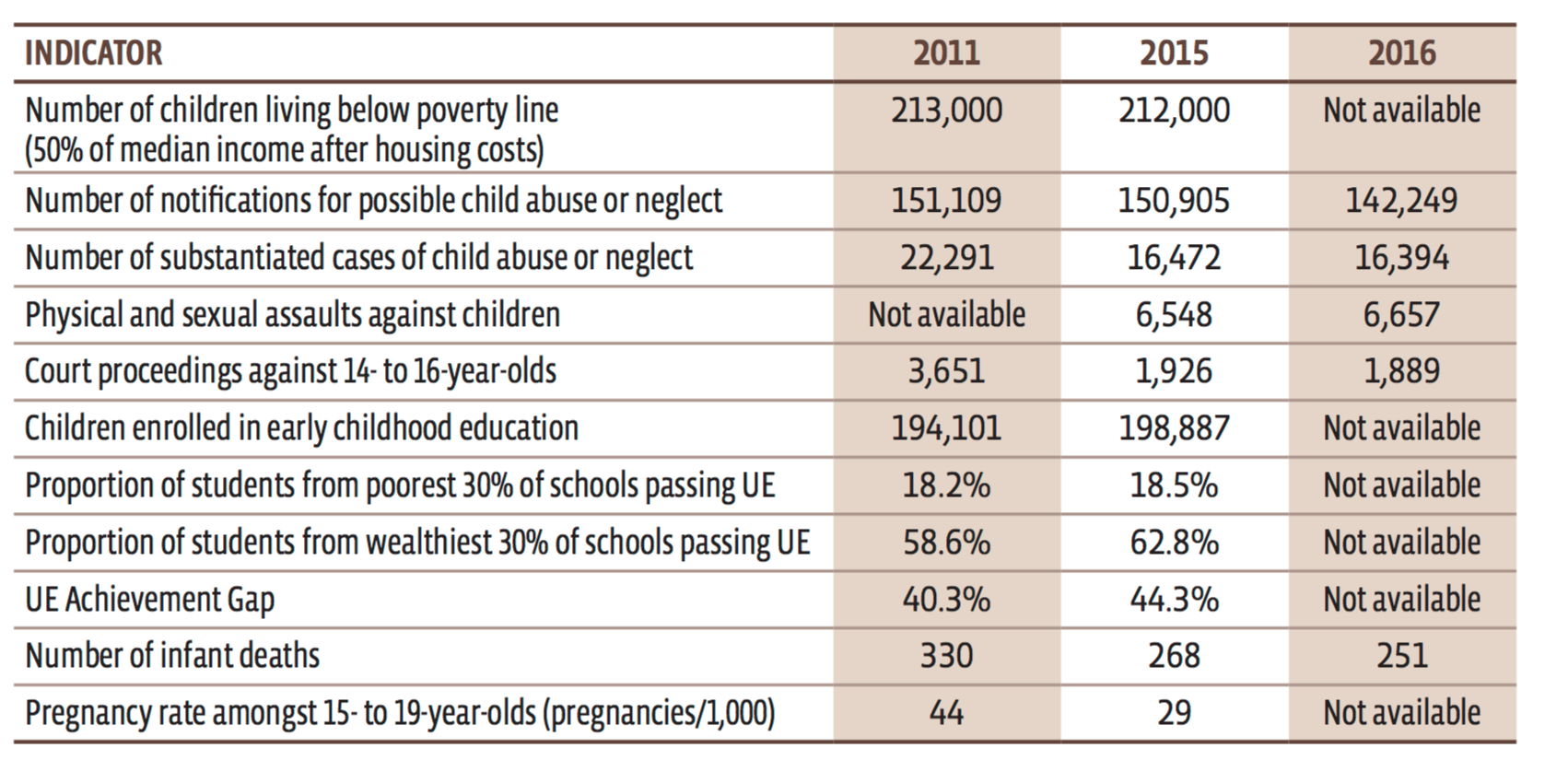 • seemingly entrenched rates of child poverty and child abuse