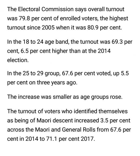 So, a ‘youth quake’ of very moderate proportions, that was it then, that got Labour and Greens into government, only with NZ First, as on their own, they did not have the numbers to bring about any change.