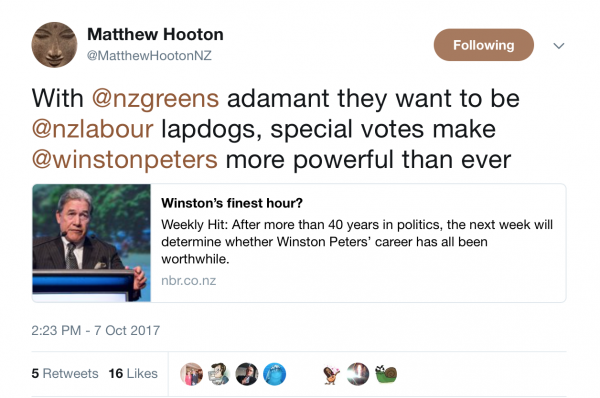 If Hooton is that worried about NZ First, he should’ve voted Green or Labour.