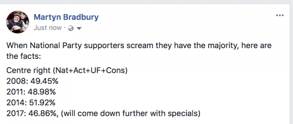 The specials counted in 2 weeks will give Labour + Greens an extra MP each, which would change the NZF-Lab-Green majority from 61 to 63.