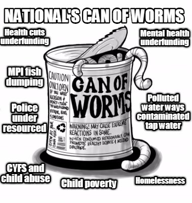 With respect, you forgot, in your can of worms, the appalling state of education the Nats left the country and Labour.