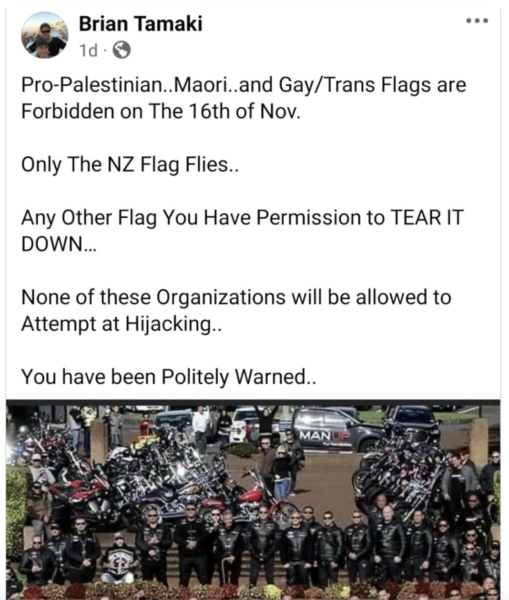 …not there was no violence, no illegality, no issues with the Hikoi, yet Bishop Brian Tamaki threatens to hijack the Motorways and threaten physical force against any counter protestors…