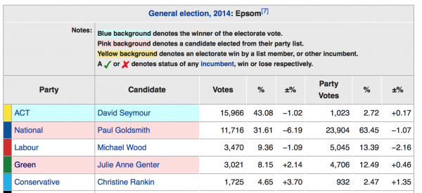 So in Epsom I am voting for National’s candidate because Paul bloody Goldsmith is far preferbal to me than David fucking Seymour.