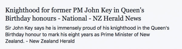 I’m trying hard to think what exactly Key has done , in such a small space of time, that he has already been paid to do and that involves the giving of his time and money, that warrants a knighthood?