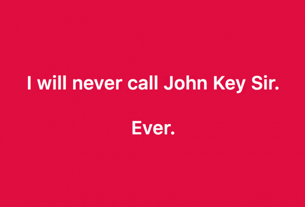 A knighthood for treason. A knighthood for the PM who tried to interfere with NZ’s sovereignty by initiating a change of flag, costing the country tens of thousands of dollars. His pet vanity project failed and he was allowed to walk away from his treachery!