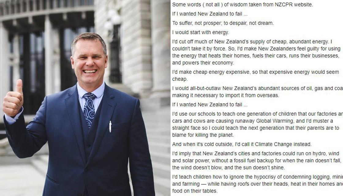 The Northland MP copped heavy criticism over the weekend for a social media post that claimed climate change “is natural” and accused the Government of unfairly targeting farmers in efforts to lower carbon emissions.