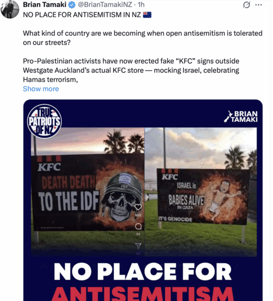 Minto was attacked for being anti-semitic with his dob in a war criminal hotline and news that Luxon has been privately meeting with the very organisations that use the anti-semitism smear to gag criticism of Israel’s horrific war crimes is deeply concerning.