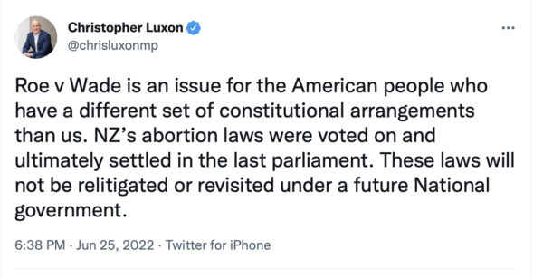 I read Luxon said today there will be no change to the abortion law under his watch.