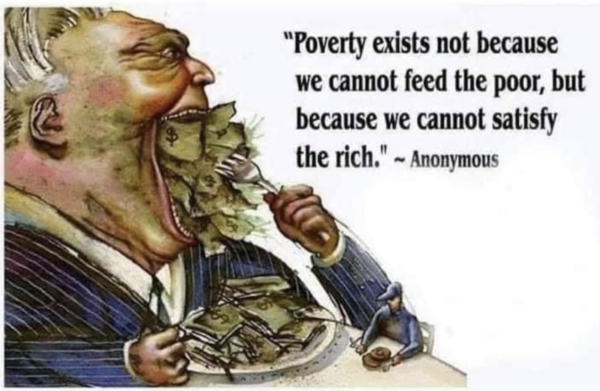 Uncontrolled capitalism creates accumulation of wealth, in a minority group, via profits from sales of items that is deemed desirable via marketing.