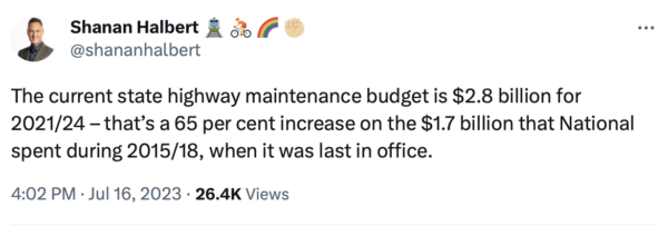 National slashed the roading budgets in 2013 and were told when they did that it would generate an enormous deterioration of our roads that would take a decade to fix! Well, Labour are fixing it!
