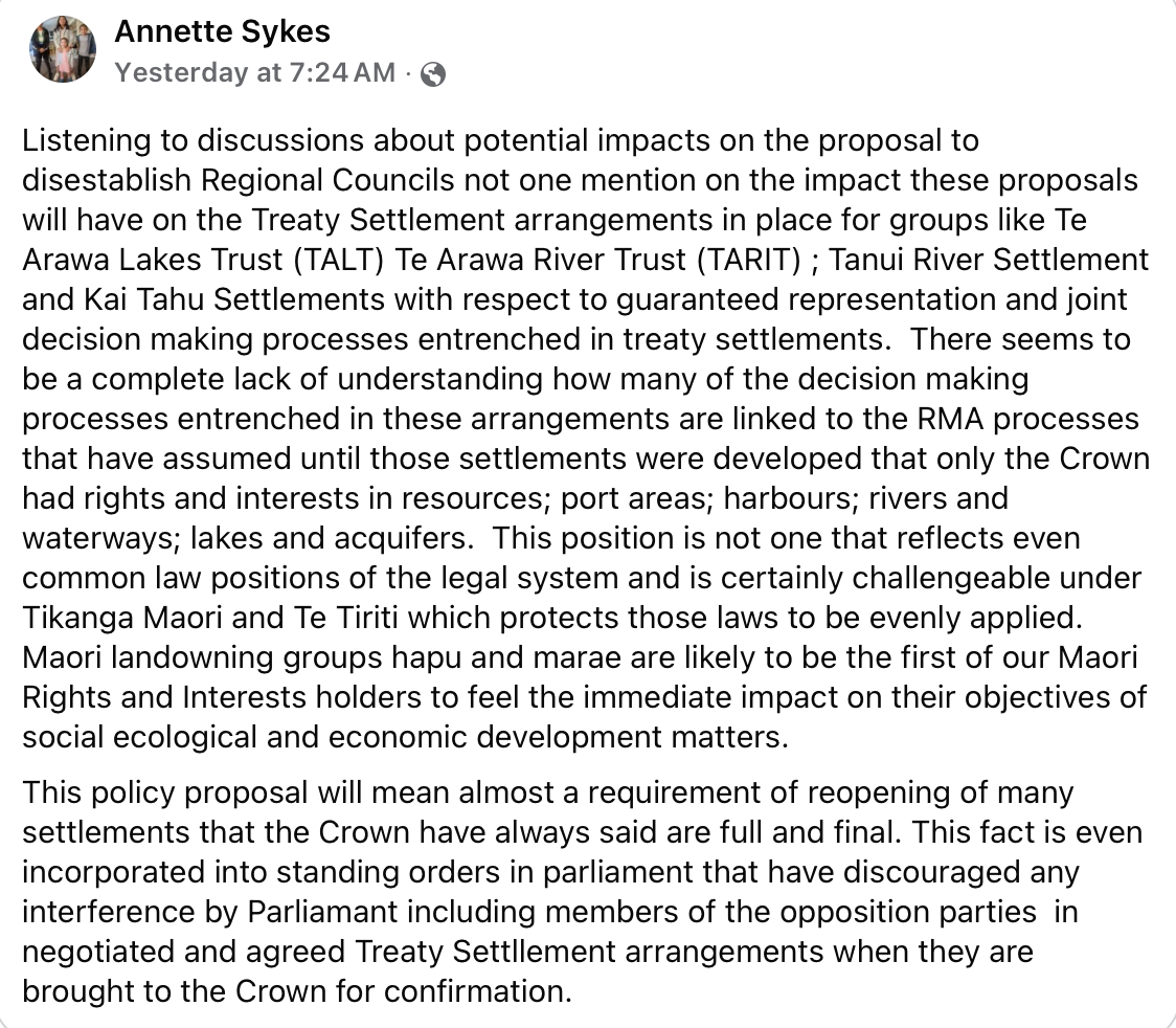 Contrast that hysterical response to Māori having their water interests acknowledged with news this week that National will simply scrap all Regional Councils!
