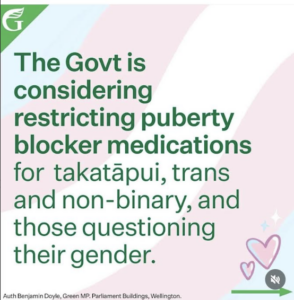 Threatening public funding for community sports groups if you allow a trans player is extremely hateful and utterly disproportionate to the supposed threat of including trans/non-binary people in the first place, so imagine the field day Winston is going to have if the Greens try to make the Select Committee Meeting a platform to lecture on puberty blockers when the scientific review into the use of them is demanding regulation because there are really big questions over their use.