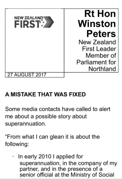 …in light of that, Winston Peters has suddenly put out this press release…