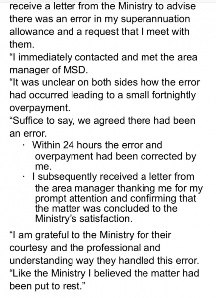 So Winston applied for Superannuation on one day – and then one month later sent it back to MSD because it contained an overpayment?