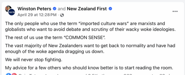 …is starting to spook the NZ Right who have simply copied Trump’s culture war revenge fantasies and expected massive popular support.